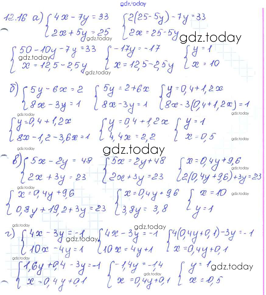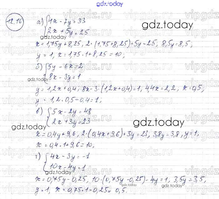 Ответы к § 12. Метод подстановки Решение к главе 3 16 Задачнику по Алгебре для 7 класса Мордкович, Александрова Базовый уровень Мнемозина 2013