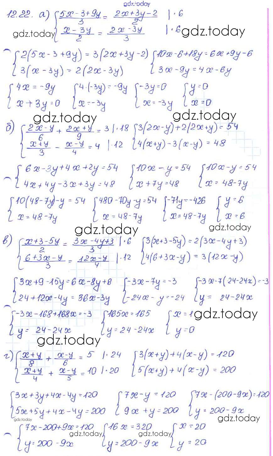 Ответы к § 12. Метод подстановки Решение к главе 3 22 Задачнику по Алгебре для 7 класса Мордкович, Александрова Базовый уровень Мнемозина 2013