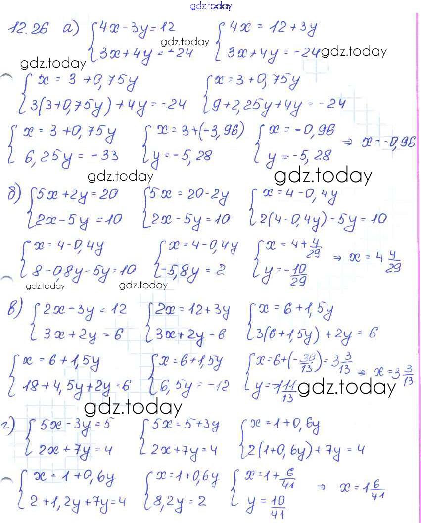 Ответы к § 12. Метод подстановки Решение к главе 3 26 Задачнику по Алгебре для 7 класса Мордкович, Александрова Базовый уровень Мнемозина 2013