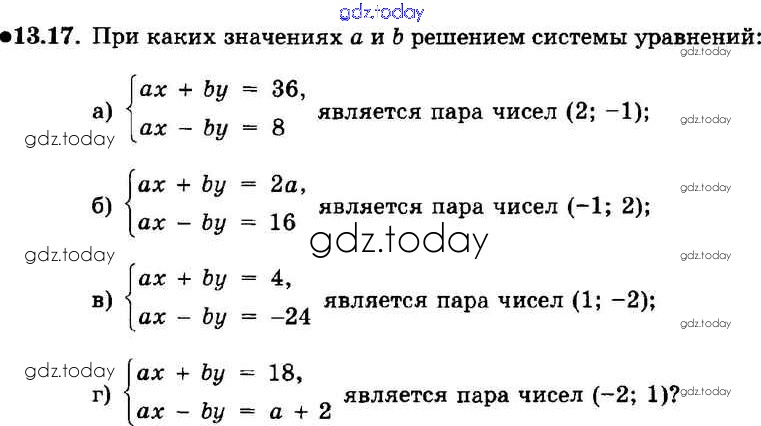На страницах сайта gdz.today вы найдете учебный и вспомогательный материал, направленный на улучшения знаний школьной программы. ГДЗ - онлайн мир знаний § 13. Метод алгебраического сложения Решение к главе 3 17 Задачнику по Алгебре для 7 класса Мордкович, Александрова Базовый уровень Мнемозина 2013