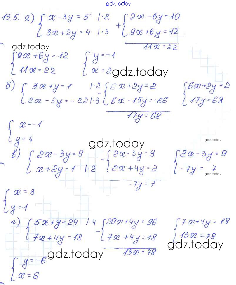 На страницах сайта gdz.today вы найдете учебный и вспомогательный материал, направленный на улучшения знаний школьной программы. ГДЗ - онлайн мир знаний § 13. Метод алгебраического сложения Решение к главе 3 5 Задачнику по Алгебре для 7 класса Мордкович, Александрова Базовый уровень Мнемозина 2013