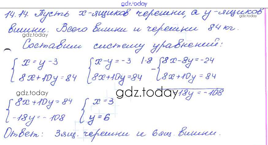Ответы к § 14. Системы двух линейных уравнений с двумя переменными как математические модели реальных ситуаций Решение к главе 3 14 Задачнику по Алгебре для 7 класса Мордкович, Александрова Базовый уровень Мнемозина 2013