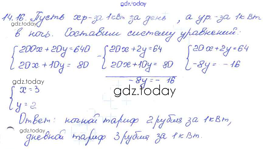 Ответы к § 14. Системы двух линейных уравнений с двумя переменными как математические модели реальных ситуаций Решение к главе 3 16 Задачнику по Алгебре для 7 класса Мордкович, Александрова Базовый уровень Мнемозина 2013