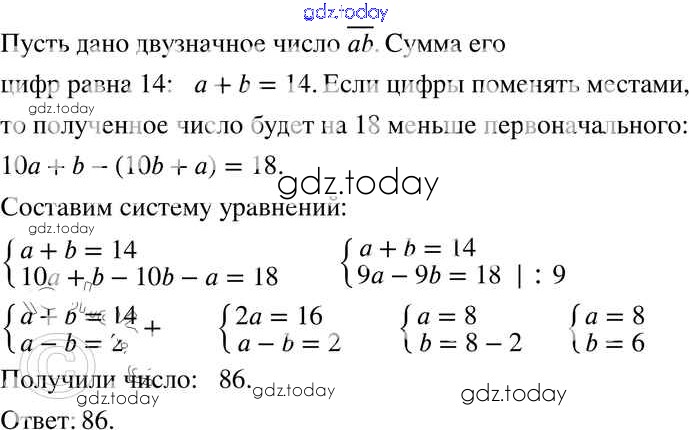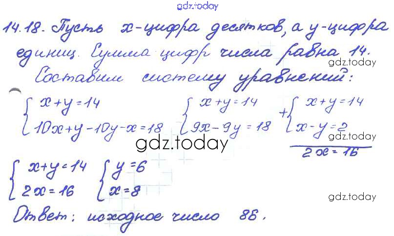 Ответы к § 14. Системы двух линейных уравнений с двумя переменными как математические модели реальных ситуаций Решение к главе 3 18 Задачнику по Алгебре для 7 класса Мордкович, Александрова Базовый уровень Мнемозина 2013