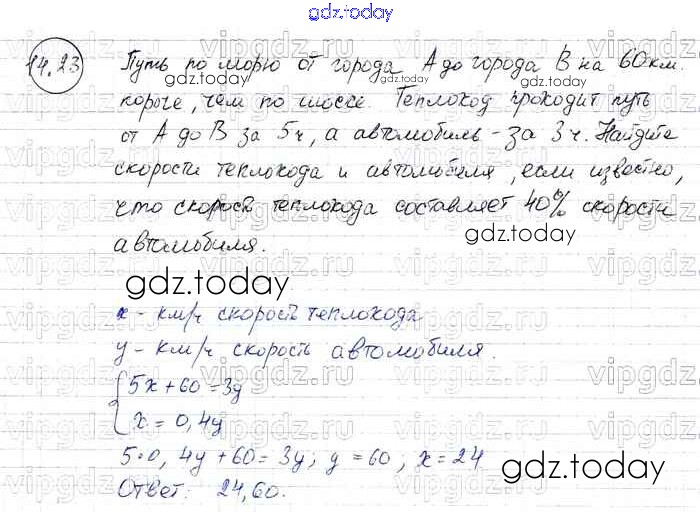 Ответы к § 14. Системы двух линейных уравнений с двумя переменными как математические модели реальных ситуаций Решение к главе 3 23 Задачнику по Алгебре для 7 класса Мордкович, Александрова Базовый уровень Мнемозина 2013
