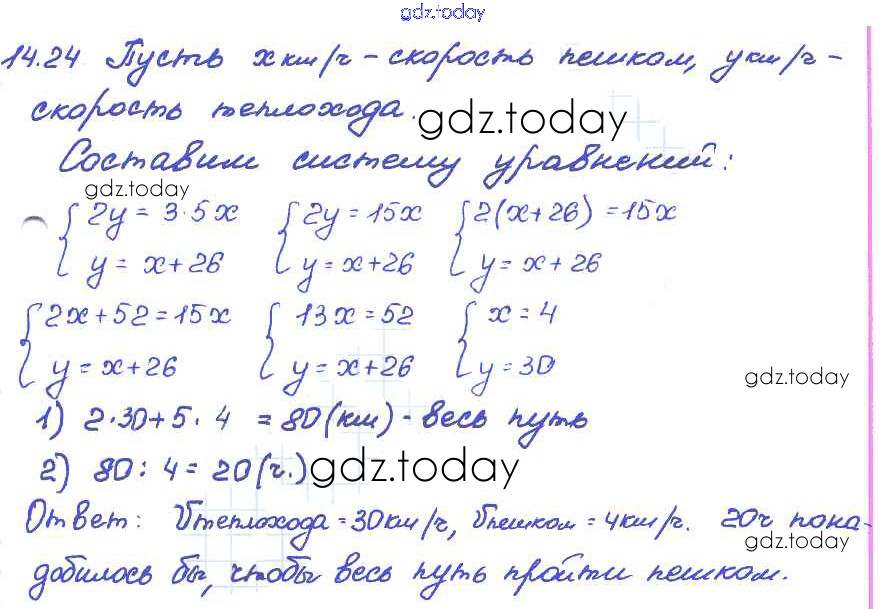 Ответы к § 14. Системы двух линейных уравнений с двумя переменными как математические модели реальных ситуаций Решение к главе 3 24 Задачнику по Алгебре для 7 класса Мордкович, Александрова Базовый уровень Мнемозина 2013