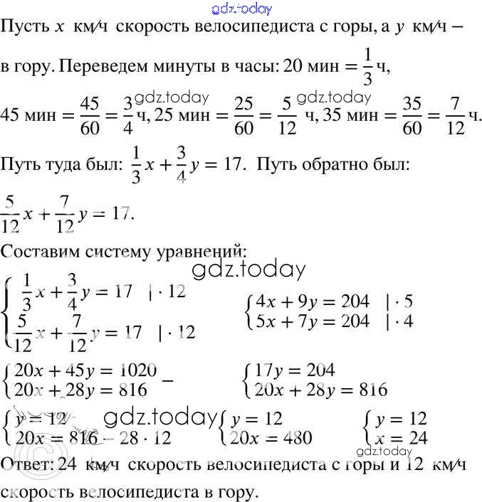 Ответы к § 14. Системы двух линейных уравнений с двумя переменными как математические модели реальных ситуаций Решение к главе 3 25 Задачнику по Алгебре для 7 класса Мордкович, Александрова Базовый уровень Мнемозина 2013