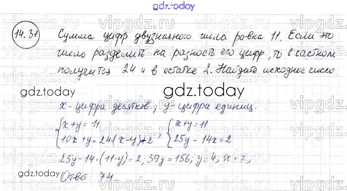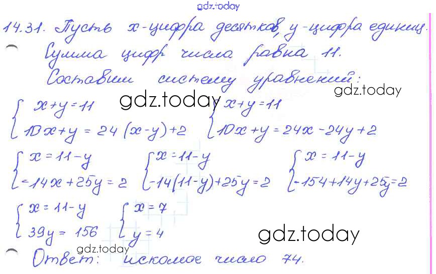 Ответы к § 14. Системы двух линейных уравнений с двумя переменными как математические модели реальных ситуаций Решение к главе 3 31 Задачнику по Алгебре для 7 класса Мордкович, Александрова Базовый уровень Мнемозина 2013