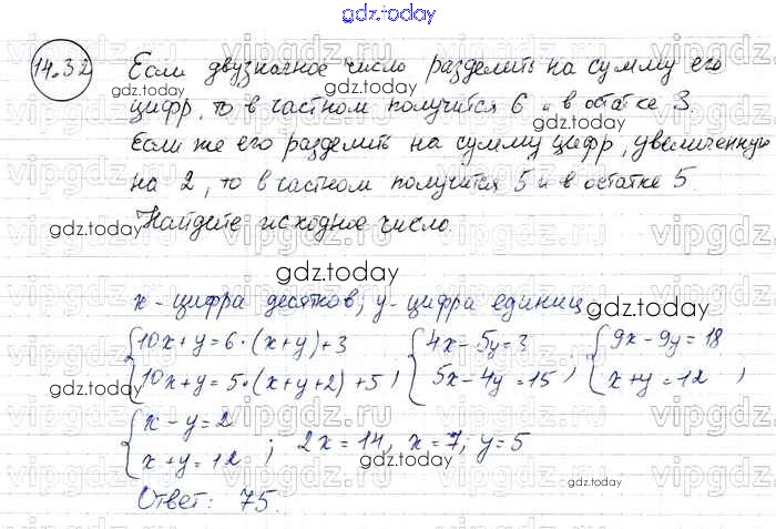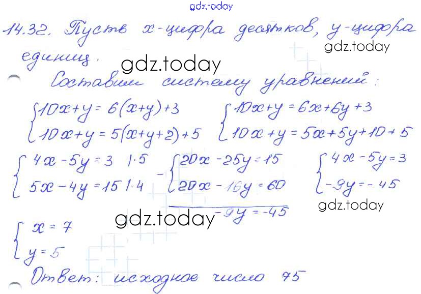 Ответы к § 14. Системы двух линейных уравнений с двумя переменными как математические модели реальных ситуаций Решение к главе 3 32 Задачнику по Алгебре для 7 класса Мордкович, Александрова Базовый уровень Мнемозина 2013