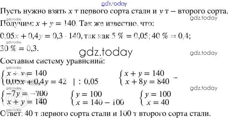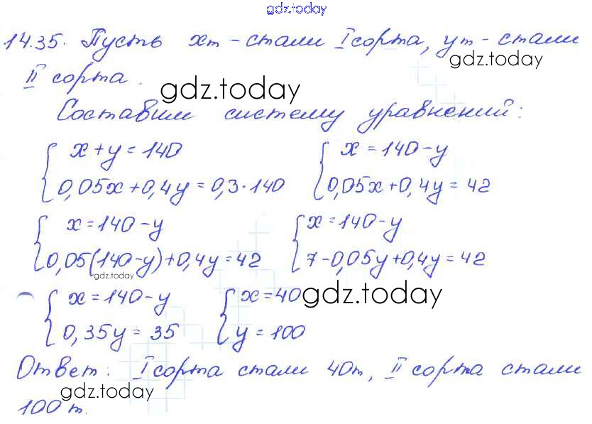 Ответы к § 14. Системы двух линейных уравнений с двумя переменными как математические модели реальных ситуаций Решение к главе 3 35 Задачнику по Алгебре для 7 класса Мордкович, Александрова Базовый уровень Мнемозина 2013