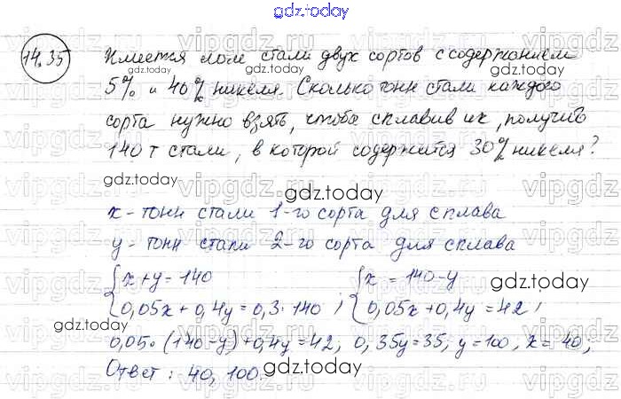 На страницах сайта gdz.today вы найдете учебный и вспомогательный материал, направленный на улучшения знаний школьной программы. ГДЗ - онлайн мир знаний § 14. Системы двух линейных уравнений с двумя переменными как математические модели реальных ситуаций Решение к главе 3 35 Задачнику по Алгебре для 7 класса Мордкович, Александрова Базовый уровень Мнемозина 2013