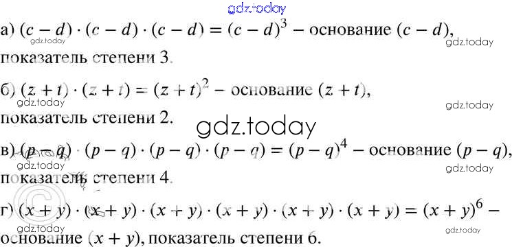 На страницах сайта gdz.today вы найдете учебный и вспомогательный материал, направленный на улучшения знаний школьной программы. ГДЗ - онлайн мир знаний § 15. Что такое степень с натуральным показателем Решение к главе 4 6 Задачнику по Алгебре для 7 класса Мордкович, Александрова Базовый уровень Мнемозина 2013