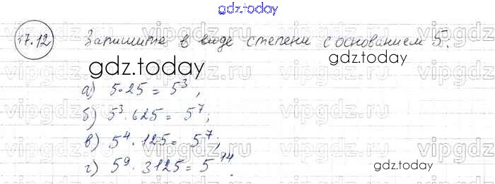 На страницах сайта gdz.today вы найдете учебный и вспомогательный материал, направленный на улучшения знаний школьной программы. ГДЗ - онлайн мир знаний § 17. Свойства степени с натуральными показателями Решение к главе 4 12 Задачнику по Алгебре для 7 класса Мордкович, Александрова Базовый уровень Мнемозина 2013