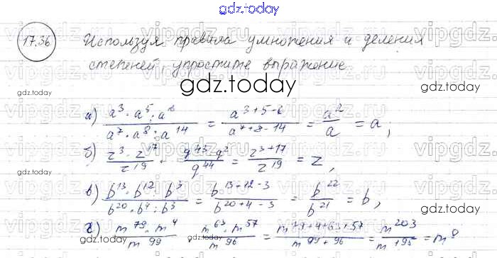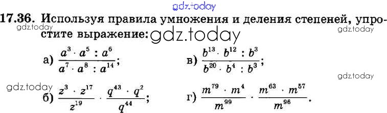 На страницах сайта gdz.today вы найдете учебный и вспомогательный материал, направленный на улучшения знаний школьной программы. ГДЗ - онлайн мир знаний § 17. Свойства степени с натуральными показателями Решение к главе 4 36 Задачнику по Алгебре для 7 класса Мордкович, Александрова Базовый уровень Мнемозина 2013