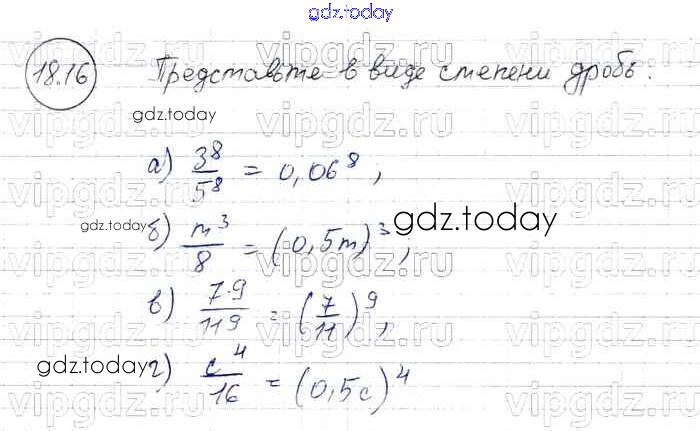 На страницах сайта gdz.today вы найдете учебный и вспомогательный материал, направленный на улучшения знаний школьной программы. ГДЗ - онлайн мир знаний § 18. Умножение и деление степеней с одинаковыми показателями Решение к главе 4 16 Задачнику по Алгебре для 7 класса Мордкович, Александрова Базовый уровень Мнемозина 2013