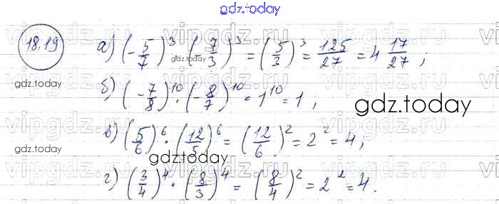 Ответы к § 18. Умножение и деление степеней с одинаковыми показателями Решение к главе 4 19 Задачнику по Алгебре для 7 класса Мордкович, Александрова Базовый уровень Мнемозина 2013