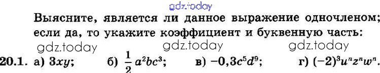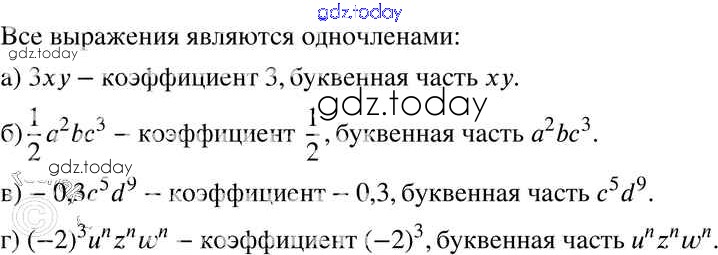 На страницах сайта gdz.today вы найдете учебный и вспомогательный материал, направленный на улучшения знаний школьной программы. ГДЗ - онлайн мир знаний § 20. Понятие одночлена. стандартный вид одночлена Решение к главе 5 1 Задачнику по Алгебре для 7 класса Мордкович, Александрова Базовый уровень Мнемозина 2013