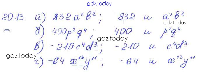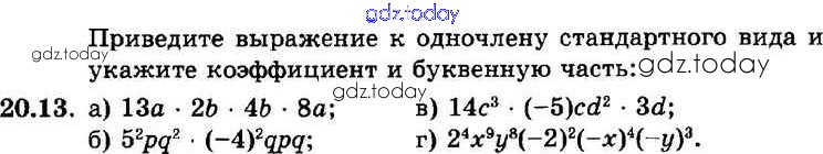 Ответы к § 20. Понятие одночлена. стандартный вид одночлена Решение к главе 5 13 Задачнику по Алгебре для 7 класса Мордкович, Александрова Базовый уровень Мнемозина 2013