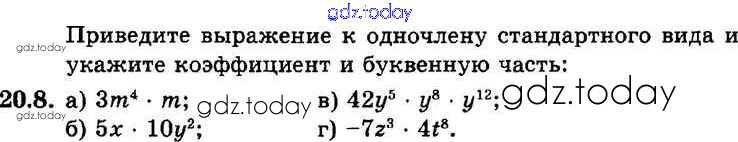 На страницах сайта gdz.today вы найдете учебный и вспомогательный материал, направленный на улучшения знаний школьной программы. ГДЗ - онлайн мир знаний § 20. Понятие одночлена. стандартный вид одночлена Решение к главе 5 8 Задачнику по Алгебре для 7 класса Мордкович, Александрова Базовый уровень Мнемозина 2013