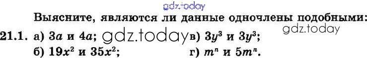 На страницах сайта gdz.today вы найдете учебный и вспомогательный материал, направленный на улучшения знаний школьной программы. ГДЗ - онлайн мир знаний § 21. Сложение и вычитание одочленов Решение к главе 5 1 Задачнику по Алгебре для 7 класса Мордкович, Александрова Базовый уровень Мнемозина 2013