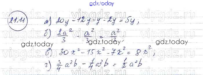 Ответы к § 21. Сложение и вычитание одочленов Решение к главе 5 11 Задачнику по Алгебре для 7 класса Мордкович, Александрова Базовый уровень Мнемозина 2013