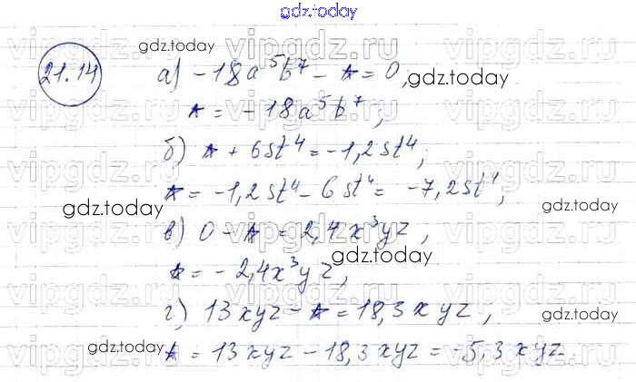 Ответы к § 21. Сложение и вычитание одочленов Решение к главе 5 14 Задачнику по Алгебре для 7 класса Мордкович, Александрова Базовый уровень Мнемозина 2013