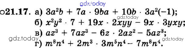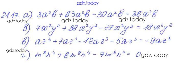 Ответы к § 21. Сложение и вычитание одочленов Решение к главе 5 17 Задачнику по Алгебре для 7 класса Мордкович, Александрова Базовый уровень Мнемозина 2013