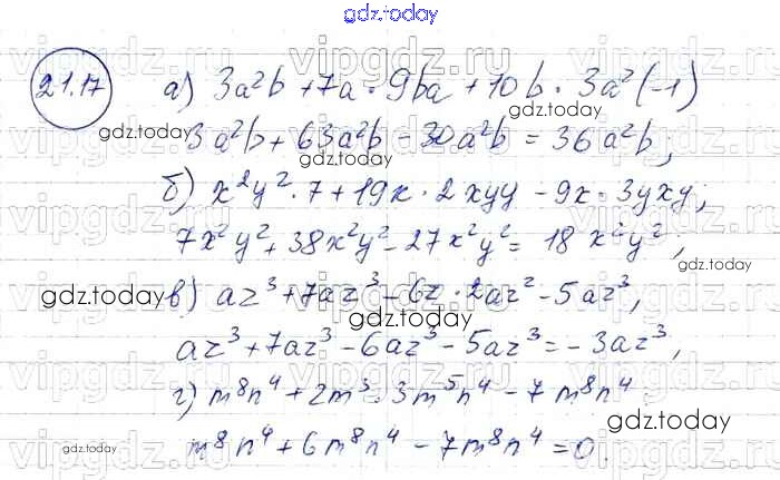 На страницах сайта gdz.today вы найдете учебный и вспомогательный материал, направленный на улучшения знаний школьной программы. ГДЗ - онлайн мир знаний § 21. Сложение и вычитание одочленов Решение к главе 5 17 Задачнику по Алгебре для 7 класса Мордкович, Александрова Базовый уровень Мнемозина 2013