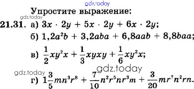 Ответы к § 21. Сложение и вычитание одочленов Решение к главе 5 31 Задачнику по Алгебре для 7 класса Мордкович, Александрова Базовый уровень Мнемозина 2013