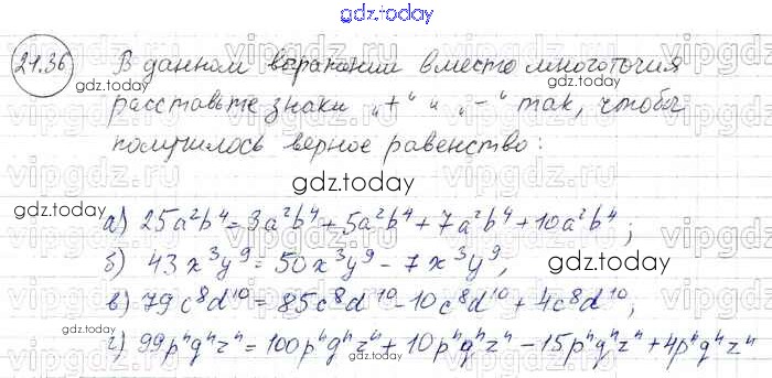 На страницах сайта gdz.today вы найдете учебный и вспомогательный материал, направленный на улучшения знаний школьной программы. ГДЗ - онлайн мир знаний § 21. Сложение и вычитание одочленов Решение к главе 5 36 Задачнику по Алгебре для 7 класса Мордкович, Александрова Базовый уровень Мнемозина 2013