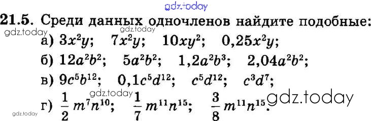 На страницах сайта gdz.today вы найдете учебный и вспомогательный материал, направленный на улучшения знаний школьной программы. ГДЗ - онлайн мир знаний § 21. Сложение и вычитание одочленов Решение к главе 5 5 Задачнику по Алгебре для 7 класса Мордкович, Александрова Базовый уровень Мнемозина 2013