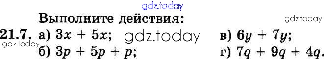 На страницах сайта gdz.today вы найдете учебный и вспомогательный материал, направленный на улучшения знаний школьной программы. ГДЗ - онлайн мир знаний § 21. Сложение и вычитание одочленов Решение к главе 5 7 Задачнику по Алгебре для 7 класса Мордкович, Александрова Базовый уровень Мнемозина 2013