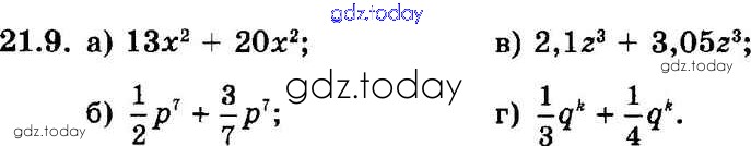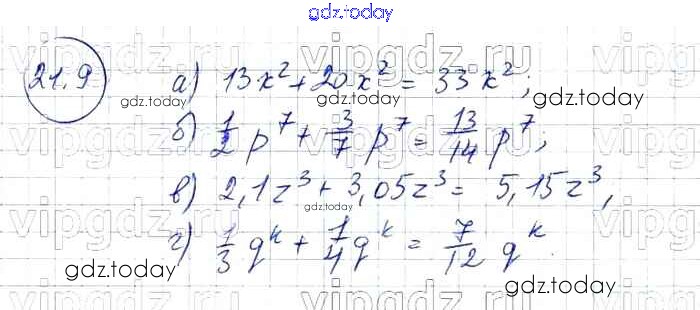 Ответы к § 21. Сложение и вычитание одочленов Решение к главе 5 9 Задачнику по Алгебре для 7 класса Мордкович, Александрова Базовый уровень Мнемозина 2013