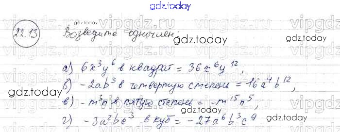 На страницах сайта gdz.today вы найдете учебный и вспомогательный материал, направленный на улучшения знаний школьной программы. ГДЗ - онлайн мир знаний § 22. Умножение одночленов. Возведение одночлена в натуральную степень Решение к главе 5 13 Задачнику по Алгебре для 7 класса Мордкович, Александрова Базовый уровень Мнемозина 2013
