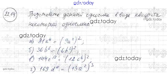 Ответы к § 22. Умножение одночленов. Возведение одночлена в натуральную степень Решение к главе 5 14 Задачнику по Алгебре для 7 класса Мордкович, Александрова Базовый уровень Мнемозина 2013