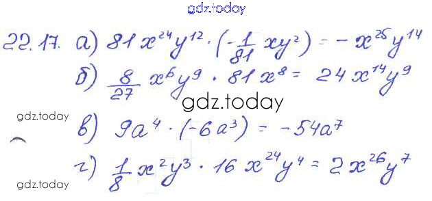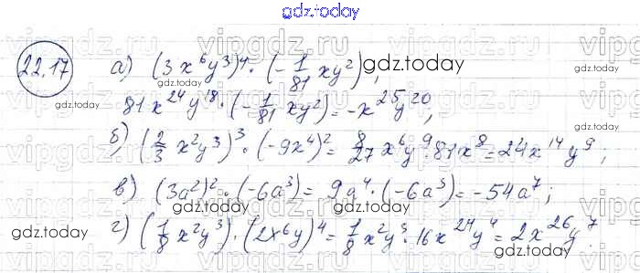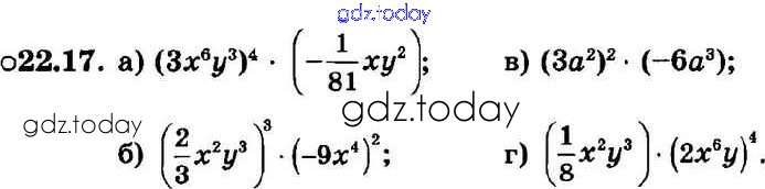 Ответы к § 22. Умножение одночленов. Возведение одночлена в натуральную степень Решение к главе 5 17 Задачнику по Алгебре для 7 класса Мордкович, Александрова Базовый уровень Мнемозина 2013
