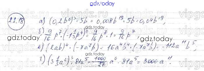 Ответы к § 22. Умножение одночленов. Возведение одночлена в натуральную степень Решение к главе 5 18 Задачнику по Алгебре для 7 класса Мордкович, Александрова Базовый уровень Мнемозина 2013