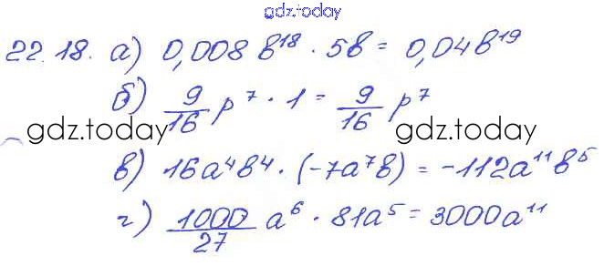 На страницах сайта gdz.today вы найдете учебный и вспомогательный материал, направленный на улучшения знаний школьной программы. ГДЗ - онлайн мир знаний § 22. Умножение одночленов. Возведение одночлена в натуральную степень Решение к главе 5 18 Задачнику по Алгебре для 7 класса Мордкович, Александрова Базовый уровень Мнемозина 2013