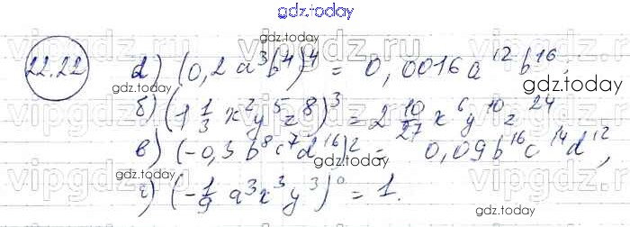 Ответы к § 22. Умножение одночленов. Возведение одночлена в натуральную степень Решение к главе 5 22 Задачнику по Алгебре для 7 класса Мордкович, Александрова Базовый уровень Мнемозина 2013