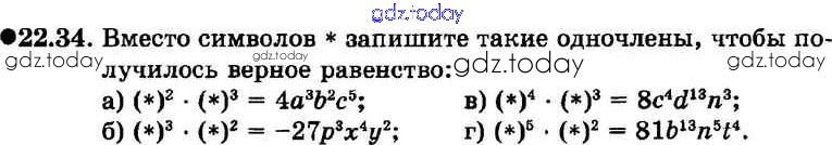 Ответы к § 22. Умножение одночленов. Возведение одночлена в натуральную степень Решение к главе 5 34 Задачнику по Алгебре для 7 класса Мордкович, Александрова Базовый уровень Мнемозина 2013