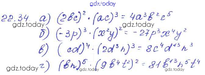 На страницах сайта gdz.today вы найдете учебный и вспомогательный материал, направленный на улучшения знаний школьной программы. ГДЗ - онлайн мир знаний § 22. Умножение одночленов. Возведение одночлена в натуральную степень Решение к главе 5 34 Задачнику по Алгебре для 7 класса Мордкович, Александрова Базовый уровень Мнемозина 2013