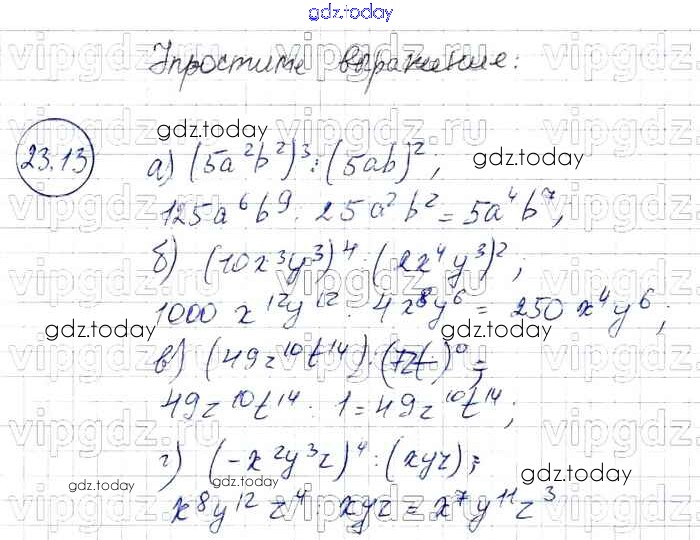 На страницах сайта gdz.today вы найдете учебный и вспомогательный материал, направленный на улучшения знаний школьной программы. ГДЗ - онлайн мир знаний § 23. Деление одночлена на одночлен Решение к главе 5 13 Задачнику по Алгебре для 7 класса Мордкович, Александрова Базовый уровень Мнемозина 2013