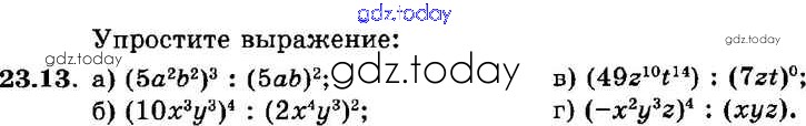 Ответы к § 23. Деление одночлена на одночлен Решение к главе 5 13 Задачнику по Алгебре для 7 класса Мордкович, Александрова Базовый уровень Мнемозина 2013