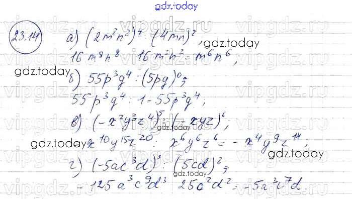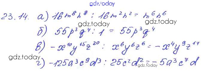 Ответы к § 23. Деление одночлена на одночлен Решение к главе 5 14 Задачнику по Алгебре для 7 класса Мордкович, Александрова Базовый уровень Мнемозина 2013