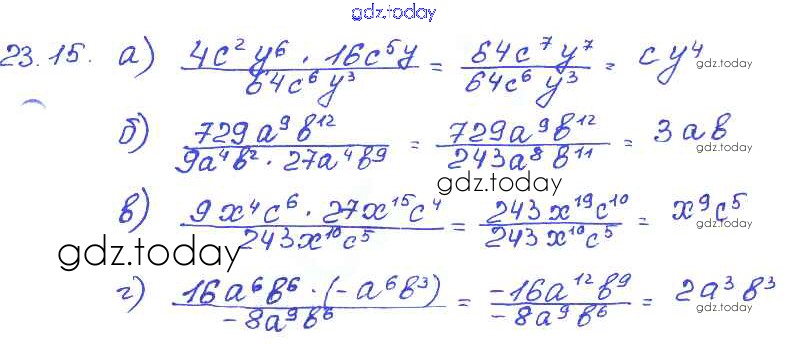 На страницах сайта gdz.today вы найдете учебный и вспомогательный материал, направленный на улучшения знаний школьной программы. ГДЗ - онлайн мир знаний § 23. Деление одночлена на одночлен Решение к главе 5 15 Задачнику по Алгебре для 7 класса Мордкович, Александрова Базовый уровень Мнемозина 2013