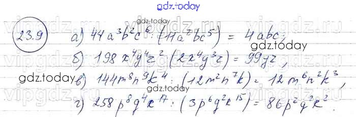 Ответы к § 23. Деление одночлена на одночлен Решение к главе 5 9 Задачнику по Алгебре для 7 класса Мордкович, Александрова Базовый уровень Мнемозина 2013