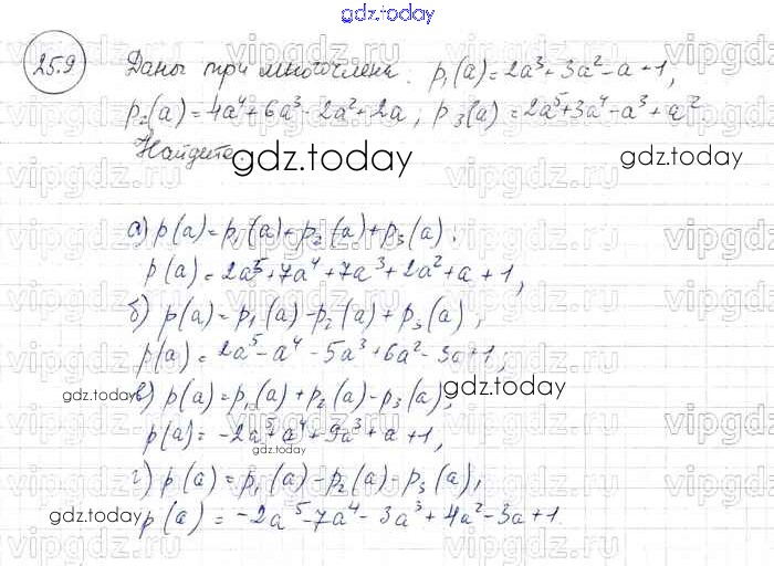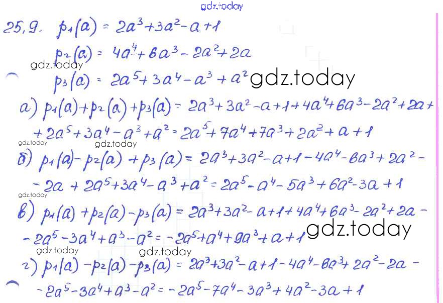 Ответы к § 25. Сложение и вычитание многочленов Решение к главе 6 9 Задачнику по Алгебре для 7 класса Мордкович, Александрова Базовый уровень Мнемозина 2013