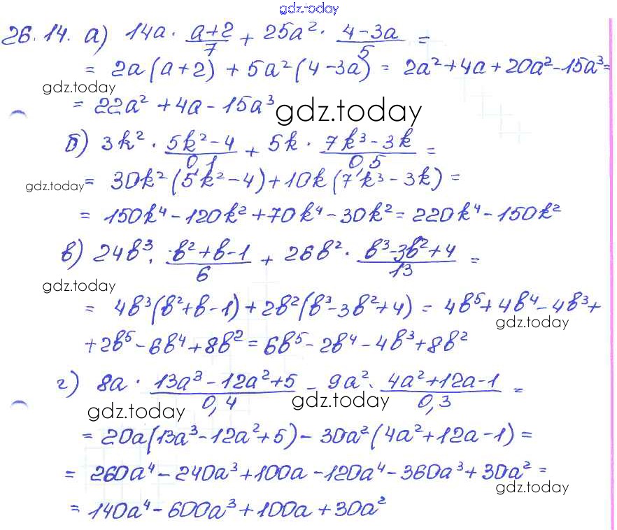На страницах сайта gdz.today вы найдете учебный и вспомогательный материал, направленный на улучшения знаний школьной программы. ГДЗ - онлайн мир знаний § 26. Умножение многочлена на одночлен Решение к главе 6 14 Задачнику по Алгебре для 7 класса Мордкович, Александрова Базовый уровень Мнемозина 2013