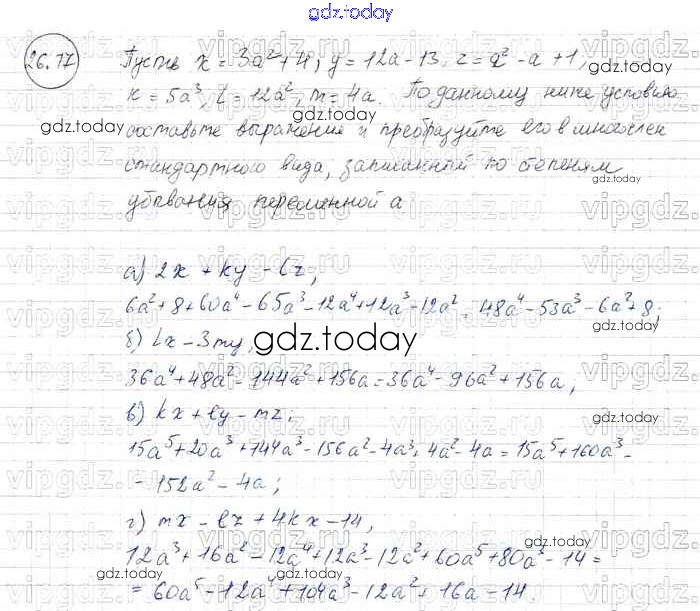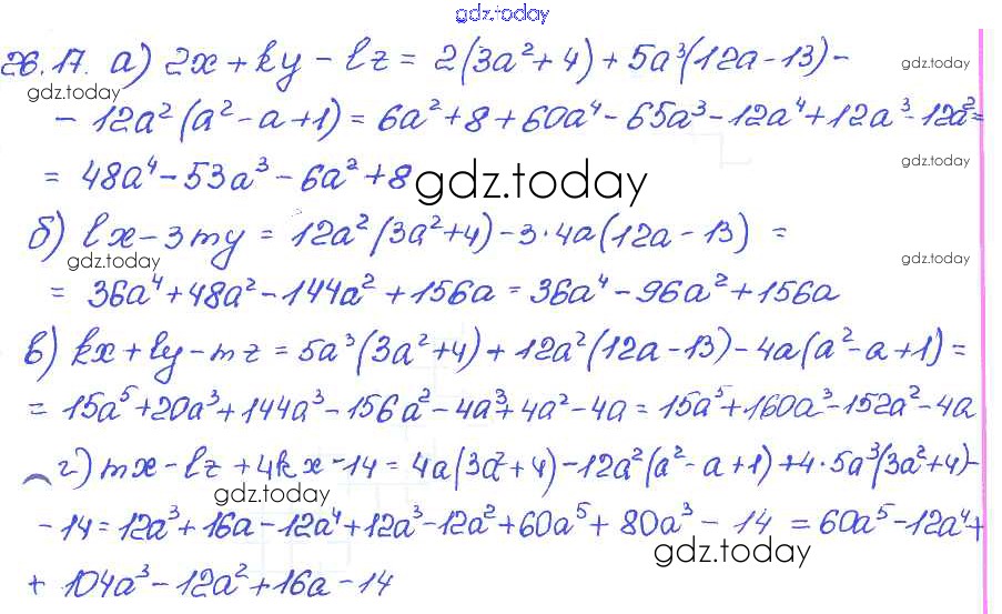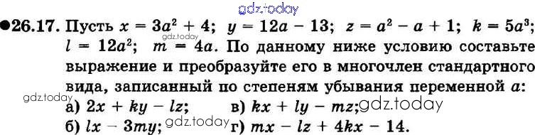 Ответы к § 26. Умножение многочлена на одночлен Решение к главе 6 17 Задачнику по Алгебре для 7 класса Мордкович, Александрова Базовый уровень Мнемозина 2013