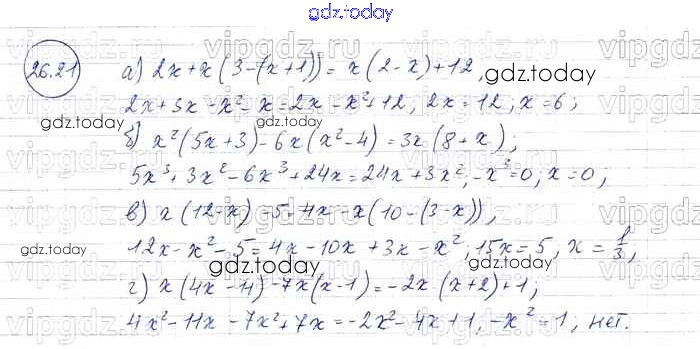 Ответы к § 26. Умножение многочлена на одночлен Решение к главе 6 21 Задачнику по Алгебре для 7 класса Мордкович, Александрова Базовый уровень Мнемозина 2013